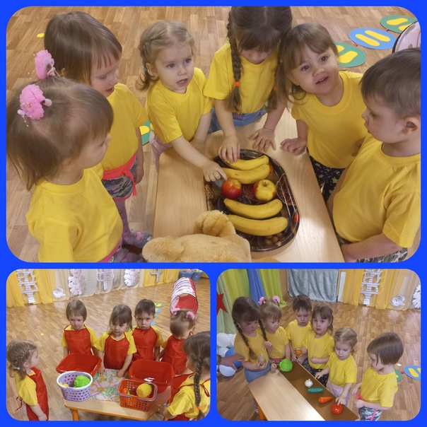 К малышам группы Цыплята приходил уже знакомый им Мишка. В игровой форме дети вместе с ним получили и уточнили знания о том что овощи и фрукты - полезные продукты. Чтобы быть здоровым и крепким, надо каждый день употреблять их в своём рационе.